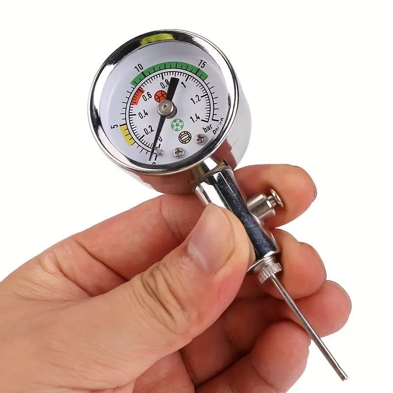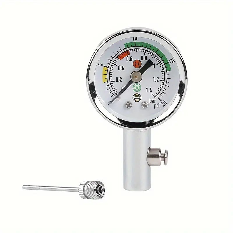 Este manómetro es la herramienta ideal para asegurarte de que cada balón tenga la presión exacta recomendada, mejorando su rendimiento y alargando su vida útil.